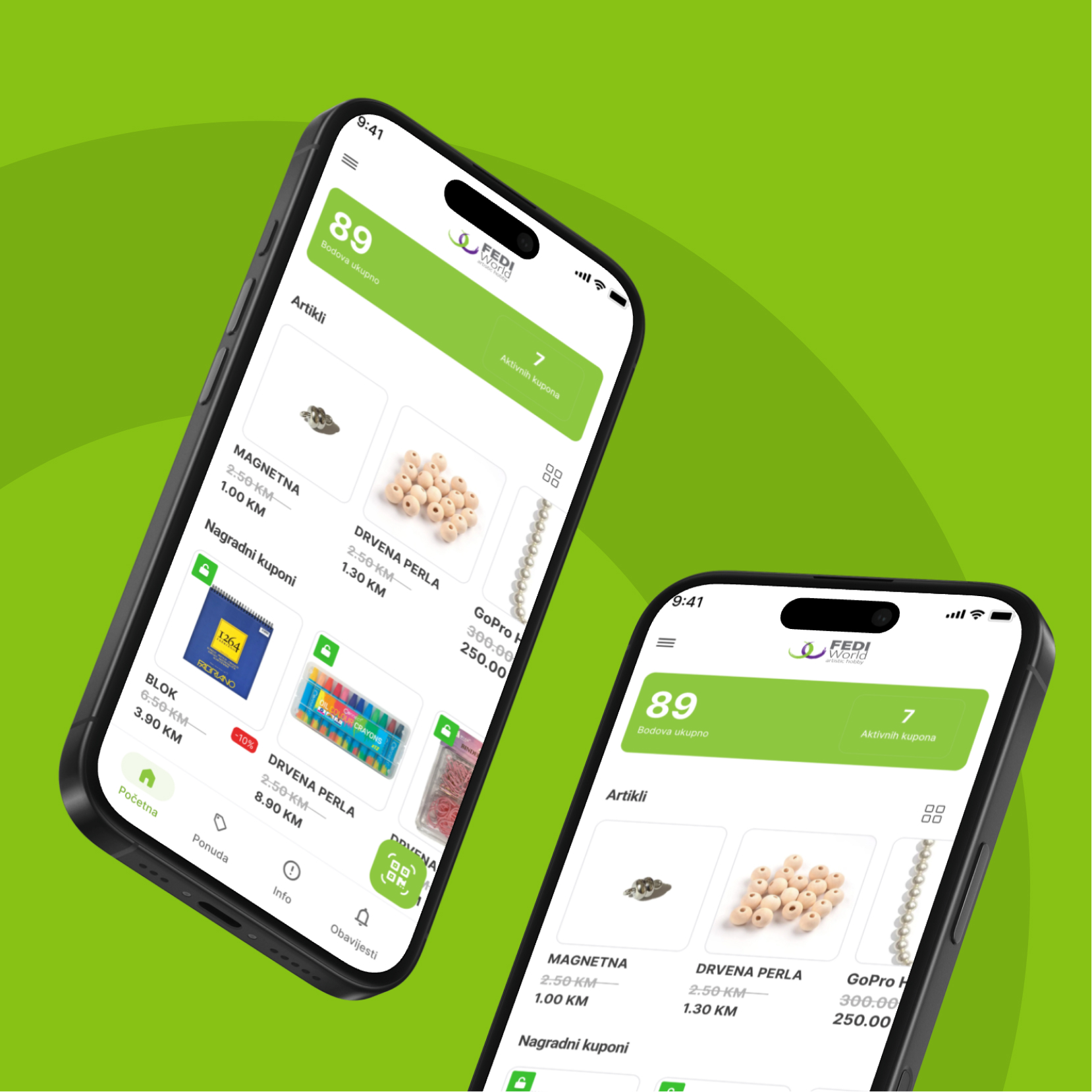 Preuzmite Fedi World aplikaciju i uživajte u pogodnostima koje pripremamo za Vas. Sakupljajte bodove i ostvarite popuste u narednim kupovinama. Putem aplikacije možete iskoristiti kupone dobrodošlice, ali i aktuelne kupone koje smo Vam pripremili!