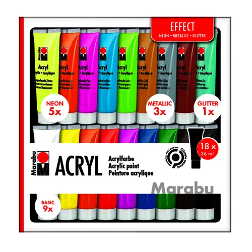 PočetnaSLIKARSTVOAkrilne bojeMARABU AKRILNE BOJE 18x36ml