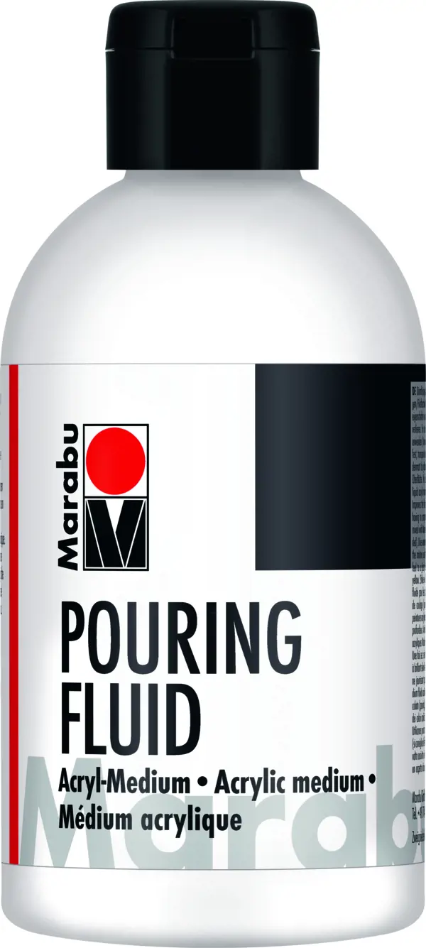 Tekući akrilni medij za upotrebu u tehnikama izlijevanja. Poboljšava tečnost akrilnih boja zadržavajući intenzitet boja. Može se koristiti samostalno ili pomiješan s Marabu akrilnim bojama (preporučuje se probna primjena). Nakon sušenja postaje vodootporan i proziran, a ovisno o omjeru smjese završni izgled varira od svilenkasto mat do sjajnog. Ovaj višenamjenski premaz ne žuti s vremenom.